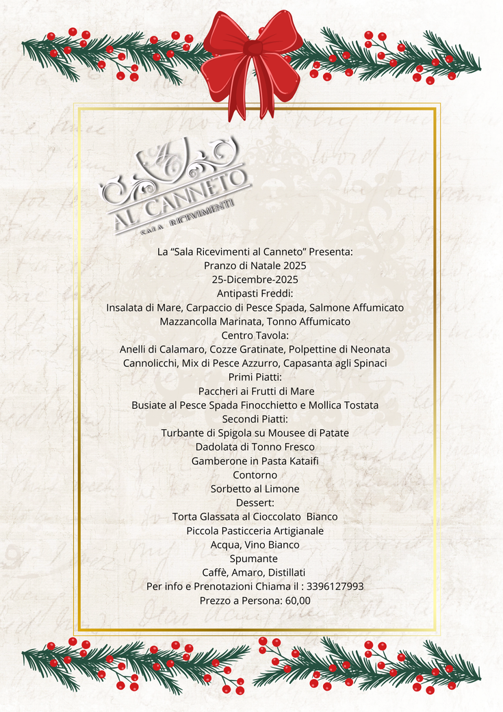 Al Canneto è una sala ricevimenti presso cui è possibile organizzare matrimoni e feste per comunioni, cresime, lauree, compleanni e altre ricorrenze importanti. La struttura dispone di due gradi sale che raggiungono una capienza massima di 440 coperti.